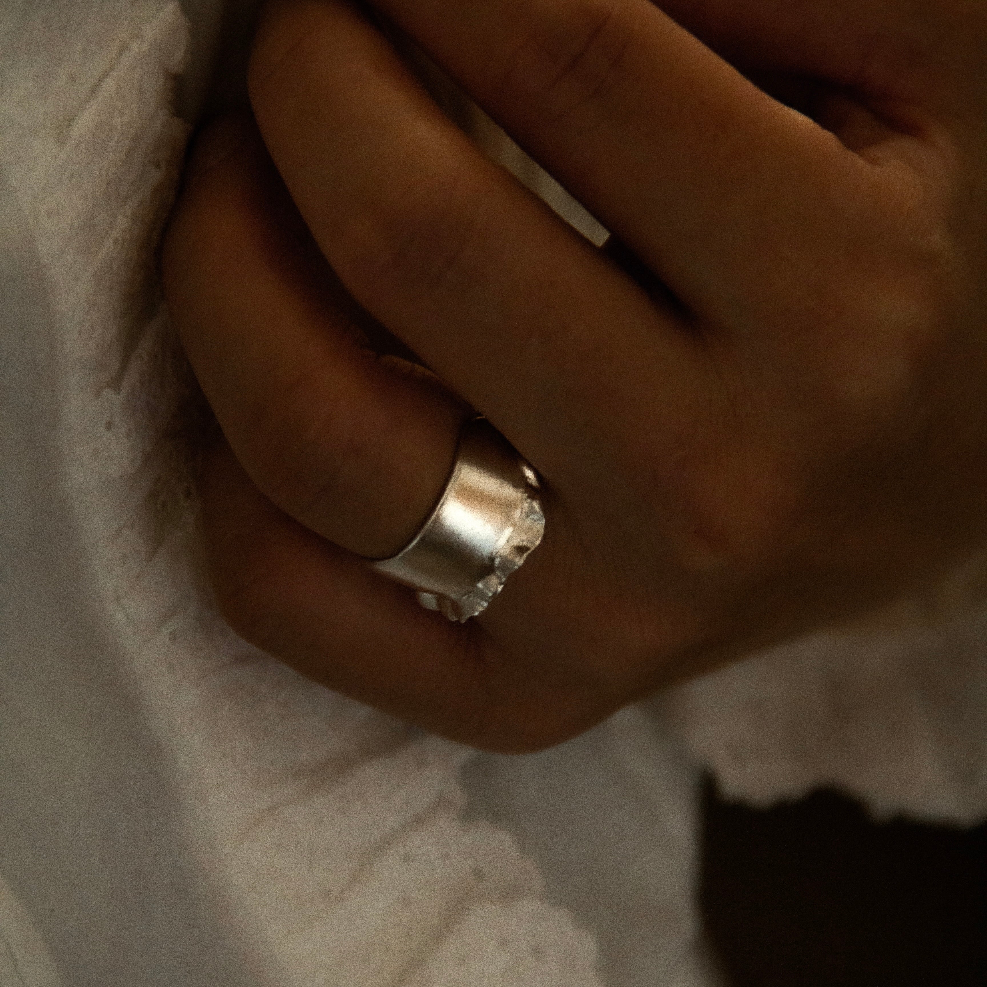 指先が印象的になる幅広リング
